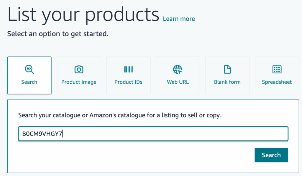 2. You are going to need to add in the ASIN or the GTIN/EAN/UP for your product. You should already have this as you will have an idea of what item you want to sell.
