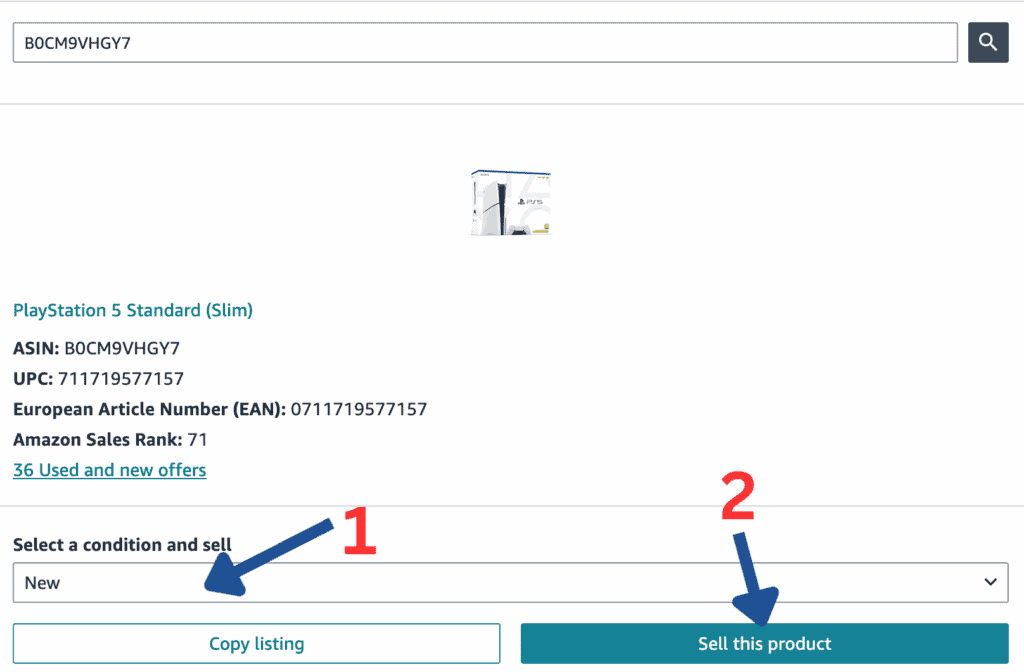 4. Now we can select the condition of the item we are selling (in this case, choose “New”) and then click “Sell this product”.