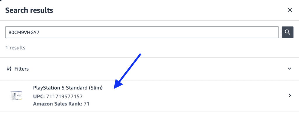3. On the right-hand side, you will be given one or several options to select to sell; select the one with the ASIN that matches the one you searched.