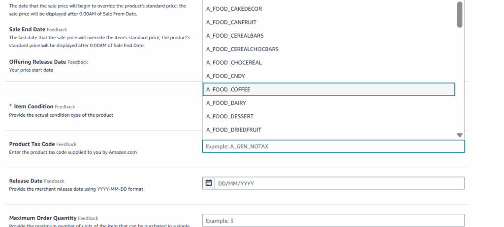 - When you get to the listing details page, scroll to Product Tax Code.