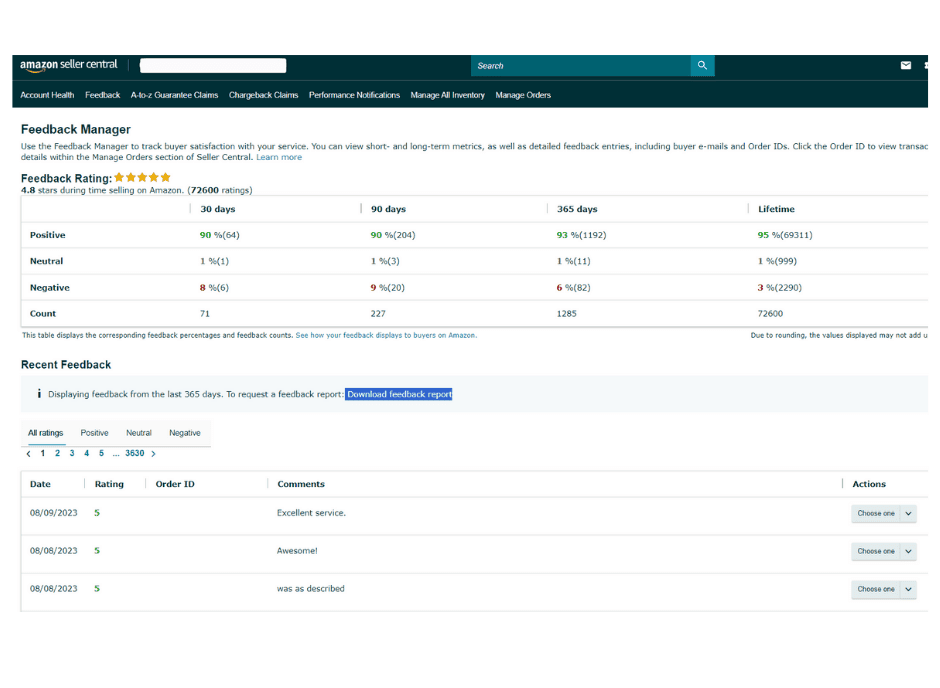 A customer is more likely to buy from a seller with a high rating and a large number of reviews. - Account Health and Stability