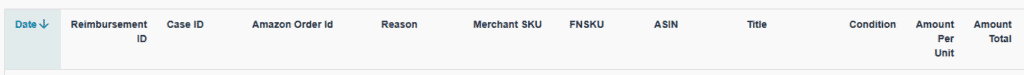 - Record: the item, ASIN, cost, reimbursement amount, case number, and status